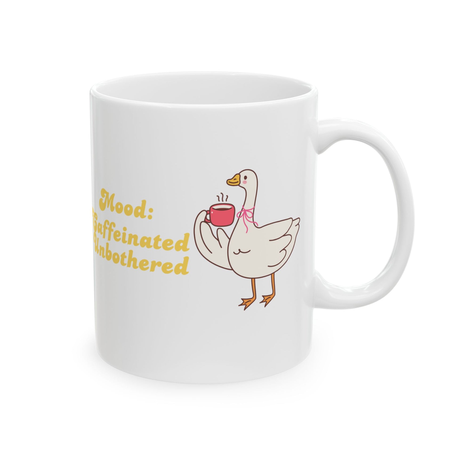 Mood: Caffeinated, unbothered Mug- Funny duck Ceramic Mug 11oz | Funny Morning Coffee Cup for Calm Souls”